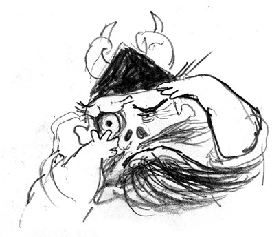Песьедух с перепугу уронил кинжал себе на ногу. Кинжал был без ножен, так что Тугодуму сделалось очень больно.