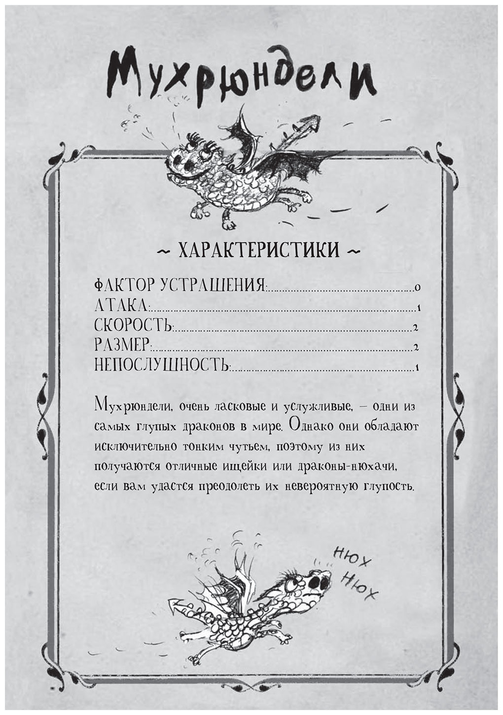В этот миг Иккинг заметил очень маленького и очень уродливого дракончика-нюхача. Дракончик невинно дрых рядом со Сморкалой и его драконом, Ураганом, и больше всего походил на невинную маленькую свинку. Он был из породы мухрюнделей, самых глупых и добродушных драконов в мире.