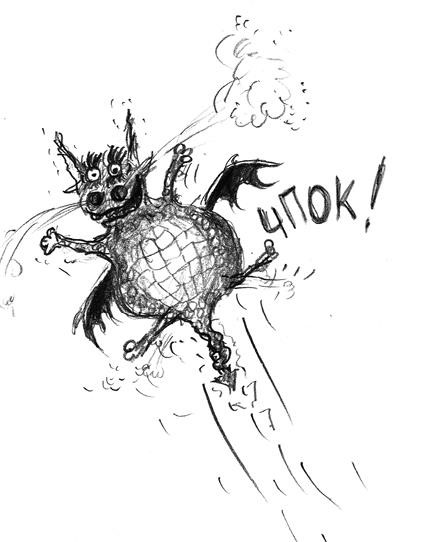 Вертокрут открыл глаза одновременно с бритвокрылом и потянулся длинным, отвратительно толстым и волосатым языком к отчаянно трепыхающимся крылышкам Мухрюнделя в надежде оторвать хоть одно. Извините, но это правда.
