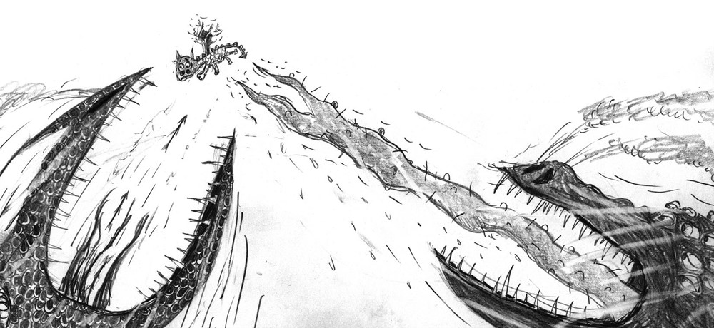 Словно неряшливое пугало, Рыбьеног бешено спрыгнул со Смертеня на спину Ветрогону, в надежде успеть перехватить Камикадзу. Иккинг гнал Смертеня вперед, а Рыбьеног направил Ветрогона вниз, сквозь дождь бритвокрыльих дротиков, к подпрыгивающей на волнах белобрысой голове.