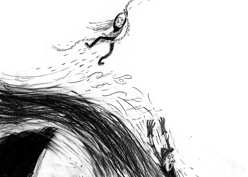 Еще секунда, и ее бы смыло, но Камикадза уцепилась обезьяньей лапкой за веревку, свисавшую со Смертеня, и ее выдернуло из бездны.