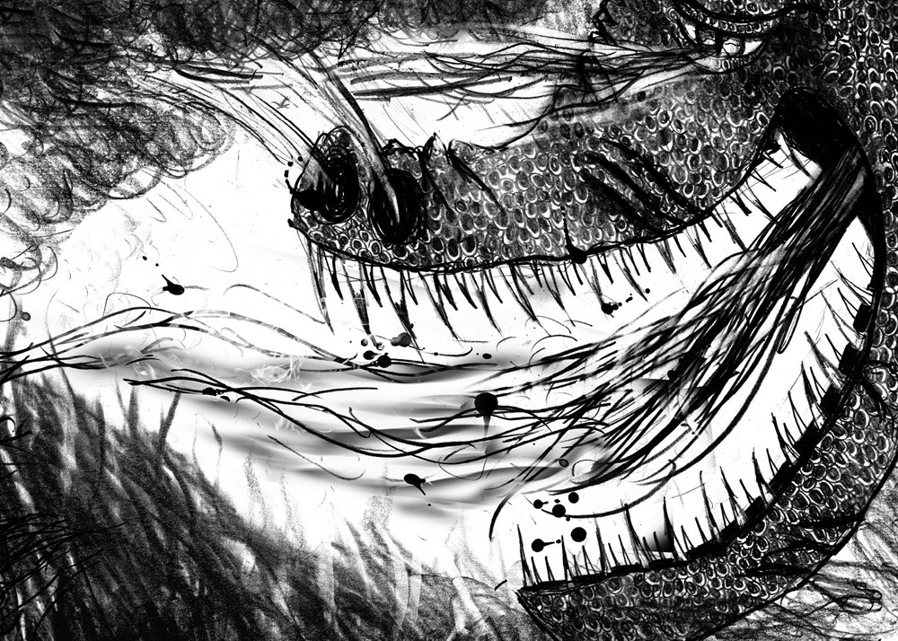 Мухрюндель с невинным видом порхнул к одной кошмарной куче: вертокруту с вываленным волосатым языком, мозгоеду с жалом, вонзенным в голову несчастного мертвого барсука, и бритвокрылу, который свернулся зловещим кольцом на мелководье, словно затаившийся велоцераптор. Тело его было наполовину в воде, но острые крылья касались берега.