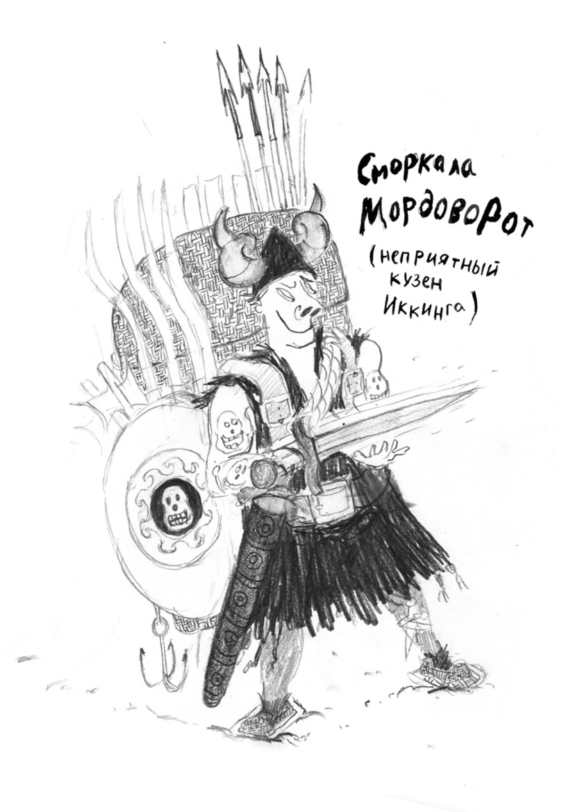 Это был Сморкала Мордоворот, мерзкий двоюродный братец Иккинга, здоровенный надменный юнец с самыми огромными ноздрями на свете. По пятам за ним топал его прихвостень, Песьедух Тугодум.