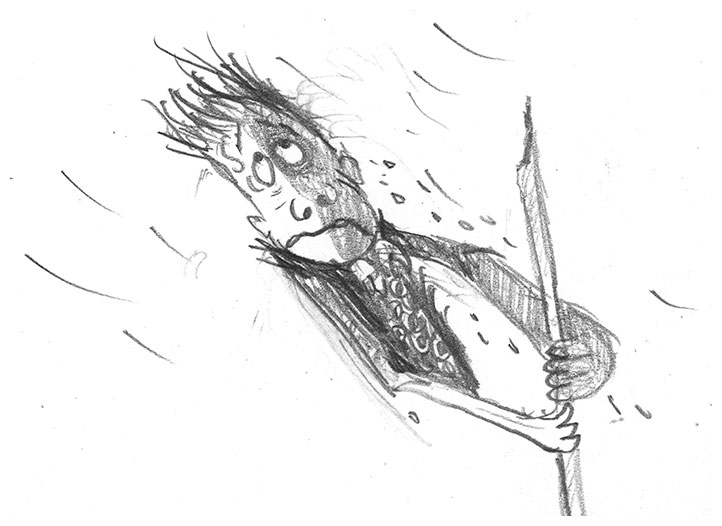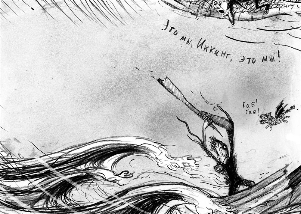 Смертень взмыл и опять пропал из виду. Лодка раскачивалась так бешено, что едва не потонула. Вода хлестала через борт, и бедный Иккинг вычерпывал ее руками.