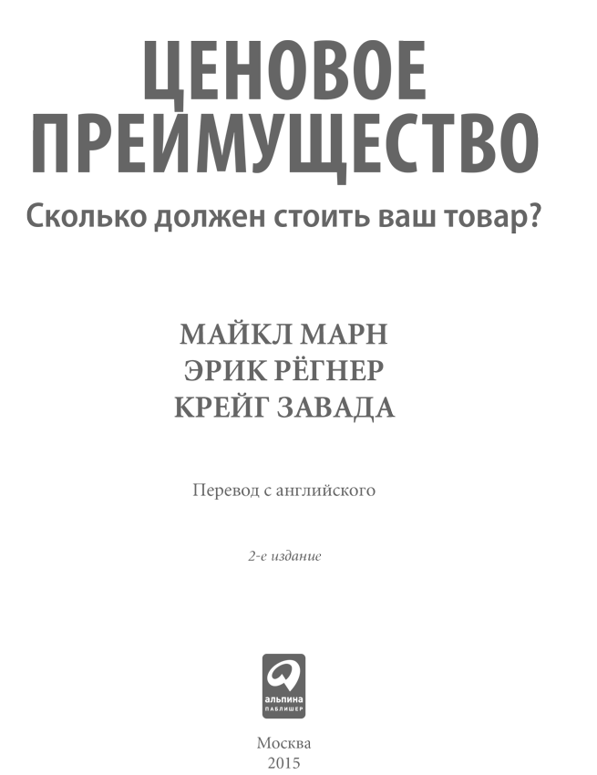 Эта книга не является исчерпывающим обзором обширной, сложившейся за долгие годы исследований теории ценообразования. Наоборот, книга написана как практическое руководство для внимательного менеджера, соблазняемого нереализованным потенциалом ценообразования и, возможно, расстроенного неудачными попытками заставить эту теорию работать на свой бизнес. Мы хотели представить логичный, структурированный подход к поиску наиболее ценных, неиспользуемых возможностей ценообразования, а также дать практические, иллюстрированные примерами советы по их применению.