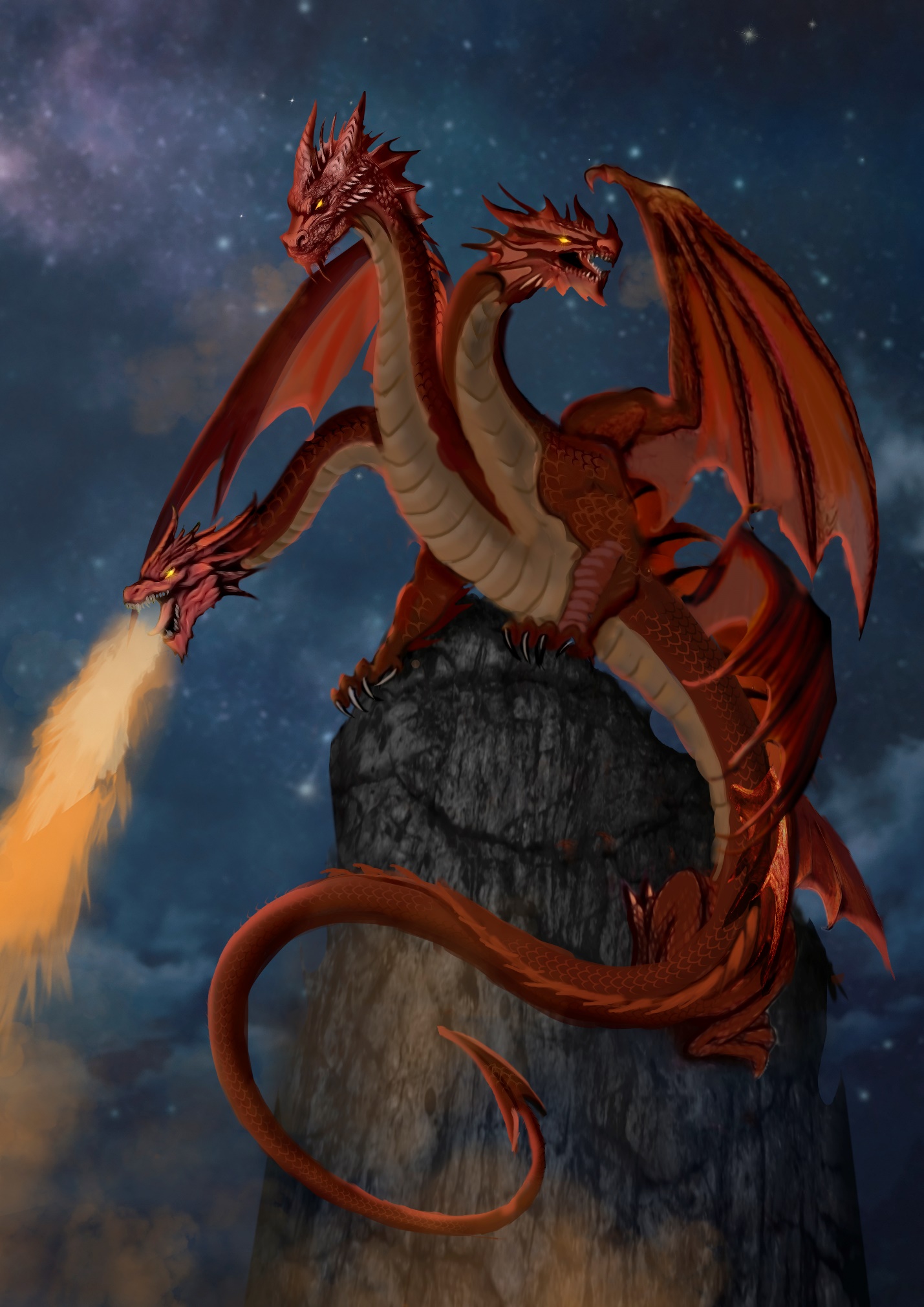 – Да, очень! – с восхищением рассказываю я. – Восемнадцать метров в высоту, девять метров хвост, три головы. Кожа, как щит, ничем не пробьёшь. Могущественный и сильный и извергает пламя!