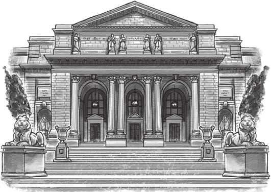 В четыре часа дня охранник Руди Льюис заступил на дежурство у входа в библиотеку с Пятой авеню. Руди покрикивал на подростков, которые забирались на Терпение и Мужество – двух каменных львов, стоявших по обе стороны широкой лестницы. Потом вежливо просил бездомных, спавших рядом с фонтанами, отправиться ночевать в ближайший приют, и когда те послушно уходили, Руди возвращался к статуям и снова кричал на ребят, карабкавшихся на львов. Когда библиотека закрылась и народ разошёлся, Руди продолжил дежурство внутри.
