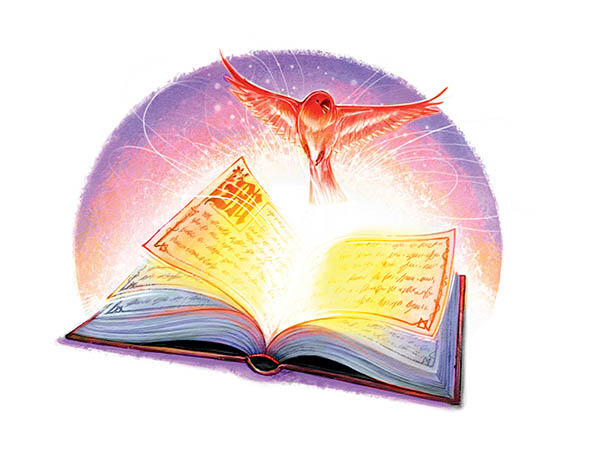 Алекс села, огляделась и наконец увидела, что издаёт этот звук. Он исходил из «Страны сказок», лежащей на её тумбочке. Страницы книги светились.