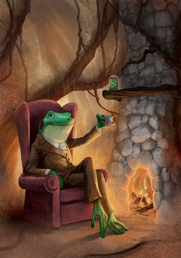Сперва от такого предложения лицо Фрогги озарила восторженная улыбка. Мысль о том, что он выберется из своей норы и отправится путешествовать по миру, была очень заманчивой. Его переполняло нетерпение. Однако неуверенность и боязнь предстать перед людьми в обличье лягушки пересилили его желание.
