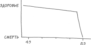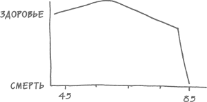 Видел я и других мужчин в годах – тех, кто никогда особенно не увлекался спортом, но кто тем не менее остается в форме и делает свою старость энергичной и осмысленной. Итак, вот какой урок я хочу преподать вам: то, что вы считаете неизбежным, на самом деле не обязано с вами случиться. Вы можете еще много лет наслаждаться вашими любимыми занятиями: велоспортом, лыжами, сексом. Чувствами! Практически с той же энергией и тем же удовольствием, что и раньше. Даже если вы несколько сдали за последнее время, вы сможете за следующие несколько лет добиться существенного улучшения своего самочувствия, а в дальнейшем поддерживать его на достойном уровне. Еще раз повторяю – это не розыгрыш и не рекламные обещания. В самом худшем случае картина, которая вас ожидает, примерно такова: