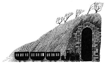 Еще одна перемена заключалась в том, что поезд остановился, хотя никакой станции видно не было. Прижавшись лицом к стеклу, я увидел, что локомотив стоит прямо перед въездом в тоннель, а вагоны выстроились у подножия громадной выемки[2]. Ее высокие крутые откосы почти закрывали небо, и потому на поезд будто опустились в сумерки.