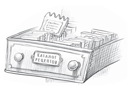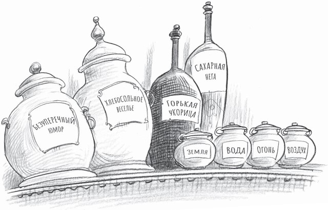 Зам выбирал очередную баночку, открывал её, принюхивался, брал щепотку-другую содержимого и осторожно высыпал на заранее приготовленный квадратик кондитерского пергамента, который тут же ловко сворачивал в крошечный конверт. Когда таких конвертиков набралось с десяток, он рассовал их по карманам фартука. Довольный проделанным отбором, Зам подошёл к задвинутому в нишу большому комоду со множеством ящичков. Он выдвинул один с надписью «Каталог рецептов». Из обилия карточек выбрал оттуда одну, с неровными, словно обгрызенными, краями, и стал повторять выведенные убористым почерком правила: