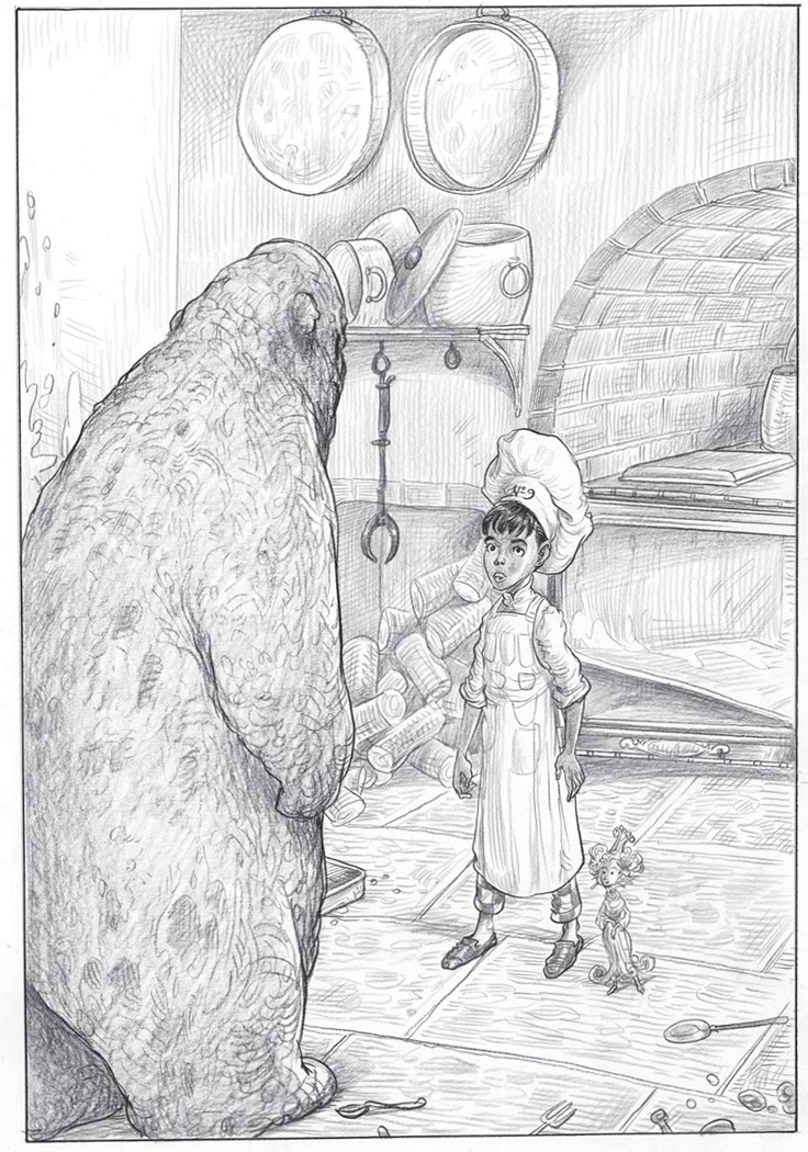 Зам спустился на кухню, чтобы присоединиться к товарищам, и увидел, что все сгрудились вокруг стола главного пекаря. Бальтазар Боабаб повернулся к Заму, в глазах его читалось удивление и восхищение.