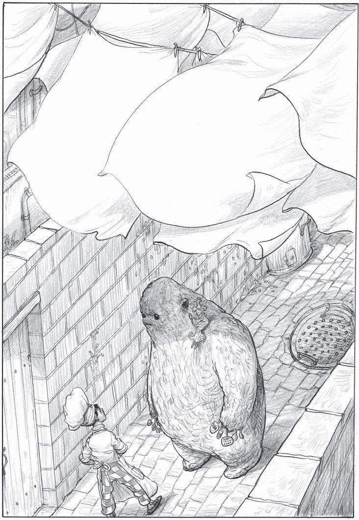 Едва они выбрались на свет из переплетения водостоков, Зам велел Пряничищу и Принцессе из Сахарной Ваты следовать за ним, обратно в Пекарню Номер Девять. Зам понятия не имел, как следует вести себя в таких случаях, и не придумал ничего лучше, чем спрятать своих новых друзей под пустыми мучными мешками в чулане.