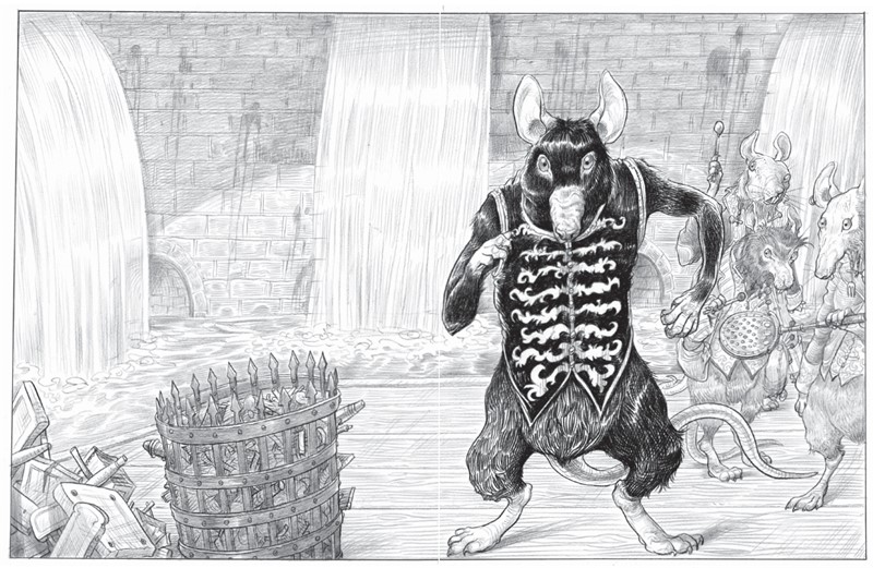 В самом центре островка, прямо перед жаровней, стояла большая крыса с гладким мехом. Крыса была одета в чёрный бархатный жилет, расшитый серебряными нитями. За нею маячили ещё трое. Этих Зам помнил по пекарне: Уолтерз-Уолтерз, Руфус-Руфус и сальношёрстный Эрикс-Эрикс. Эрикс-Эрикс сжимал в обеих лапах чудо-ложку, а двое его дружков держали наготове длинные спички, чтобы чиркнуть ими о камень в любой момент.