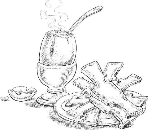 – Я буду счастлива, если вы с братом разделите мой завтрак. Я просто обожаю яйца всмятку и солдатиков.