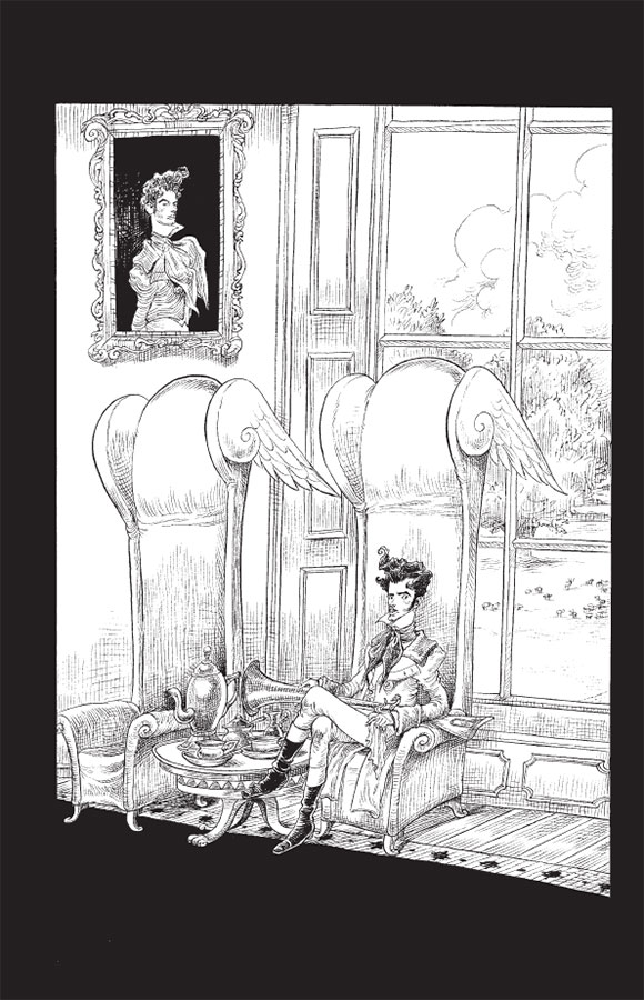 Лорд Гот сидел в одном из крылатых кресел под высоким окном. Он был облачен в сапоги и бриджи для верховой езды, синий фрак с меховым воротником и манжетами. На шее у него красовался один из тех великолепных шелковых галстуков, что были введены в моду самолично им: в его честь их так и называли «готическими». Он сидел, заложив ногу за ногу. На коленях покоился идеально начищенный мушкет.