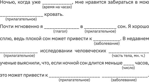 Sleep LibsЗаполните приведенный ниже Mad Libs[7]: