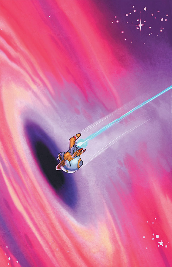 В центре Галактики под названием Млечный Путь располагается колоссальная Чёрная дыра, в миллионы раз тяжелее Солнца. Вокруг неё вращается множество частиц, отчего кажется, будто Чёрная дыра окружена огромным облаком пыли. Время от времени какая-нибудь частица или космический камешек подлетает слишком близко, и тогда Чёрная дыра поглощает предмет навсегда. Ничто из того, что попадает внутрь Чёрной дыры, никогда больше не выходит из неё. Ничто? Ну, космический корабль Лунник, благодаря своему чудесному антипротонному двигателю и особому магнитному полю трижды летал через Чёрную дыру и всегда возвращался. Внутри ракеты проходило совсем немного времени, а на самом деле путешественники перемещались на много тысяч, а то и миллионов лет раньше того времени, когда они влетали в дыру. И вот яркий красивый Лунник снова направляется к Чёрной дыре, на этот раз – чтобы попытаться попасть аж на три с половиной миллиарда лет назад.