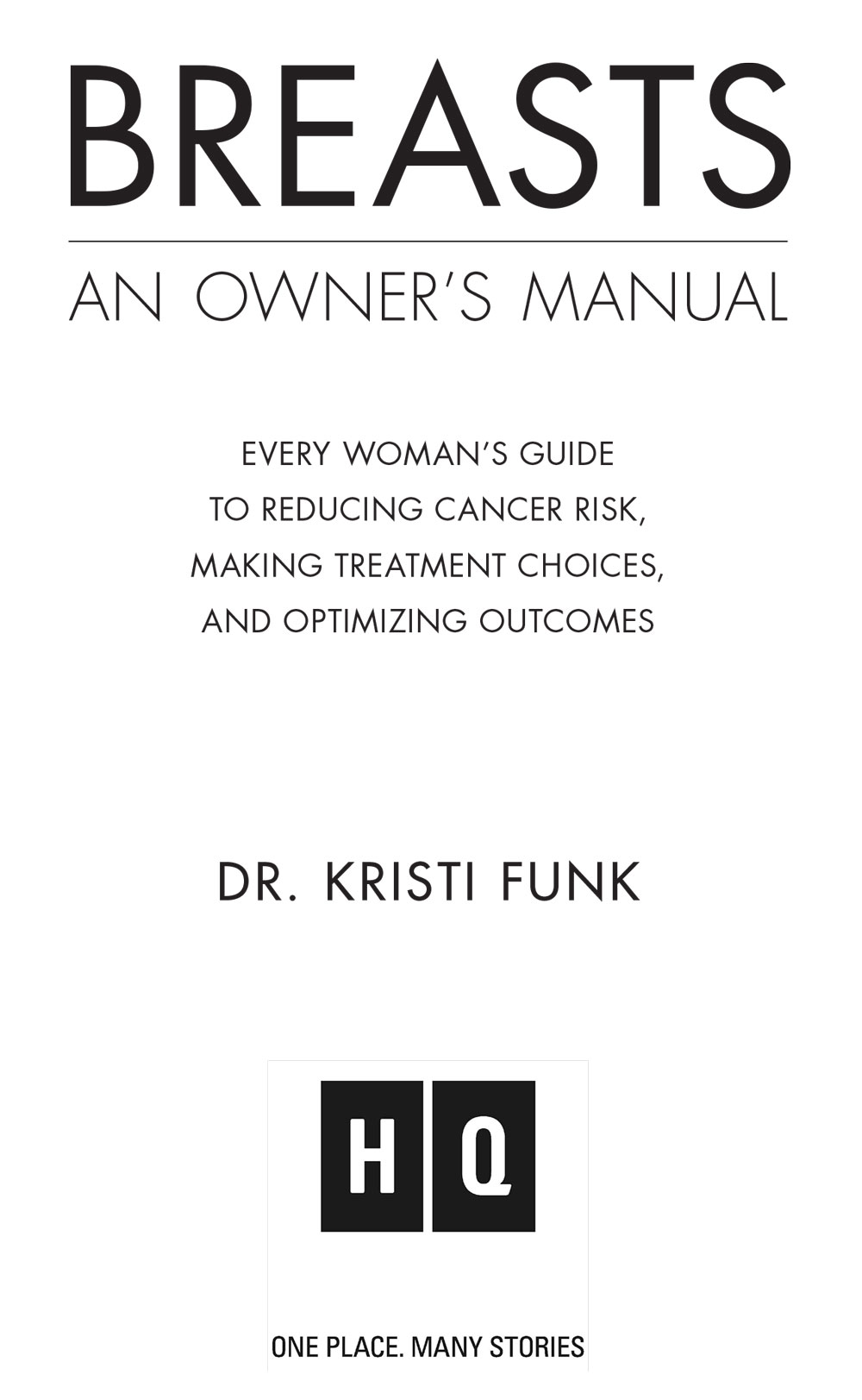 “I love this book! In Breasts: An Owner’s Manual, Dr. Kristi Funk’s evidence-based advice will have you kicking breast cancer—and all of life’s major killers—to the curb.”
