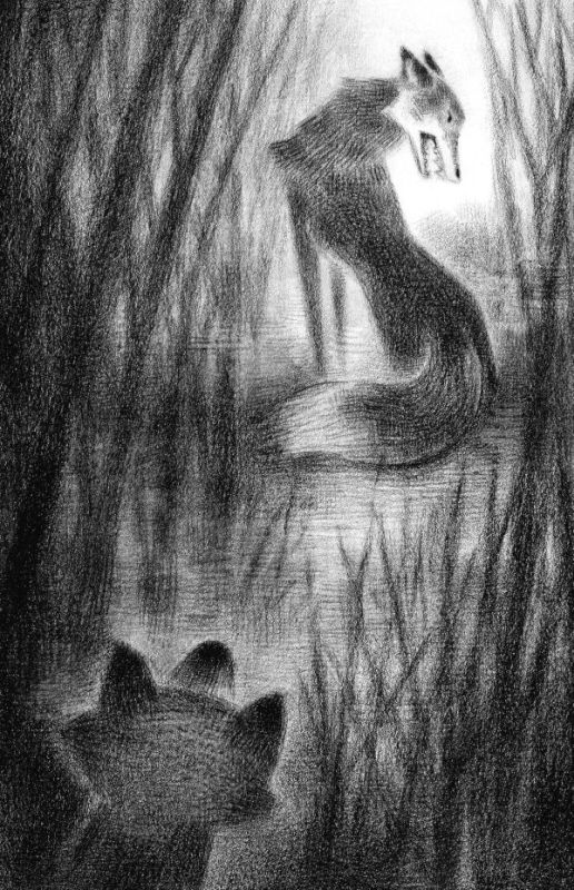 Так семеро лисёнышей пробирались по лесу – под белыми, словно кость, сучьями, мимо сломанного капкана, за храпливый грот, над человеческими костями… ко входу в Болотную Пещеру.