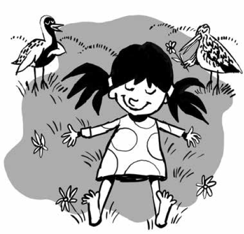 – Знаю, сейчас ты лежишь, закрыв глаза, под жаркими лучами солнца на траве. Цветы благоухают, поёт золотистая ржанка. Слышишь? – спросила мама и засвистела, как птичка: – Тир-рин-тиу.