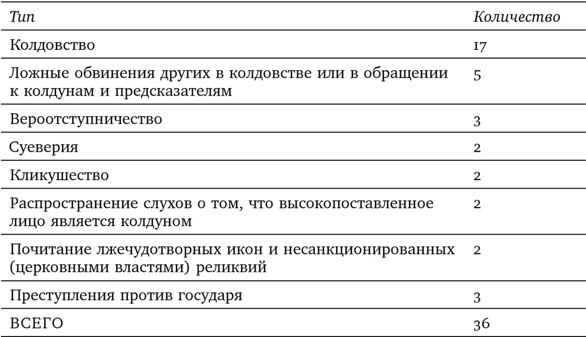Таблица 1.1. Религиозные преступления, расследованные Преображенским приказом и Тайной канцелярией, 1700‐е – 1760
