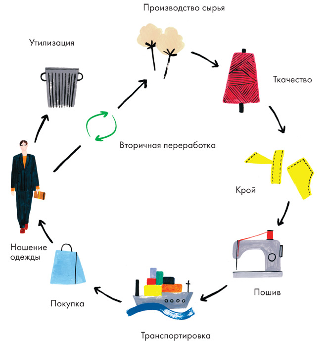 На всех стадиях, от производства до использования, когда мы стираем, сушим и (зачастую) преждевременно отправляем одежду в утиль, она становится источником углекислого газа, из-за которого меняется климат. К этому минному полю проблем добавляются небезопасные условия и несправедливая оплата труда. Если бы мы могли проследить, какие невидимые нити соединяют наши вещи с полями, фермерами – производителями сырья – и фабричными рабочими, которые это сырье превращают в готовые изделия, нас наверняка поразили бы масштабы экологического и социального разорения.