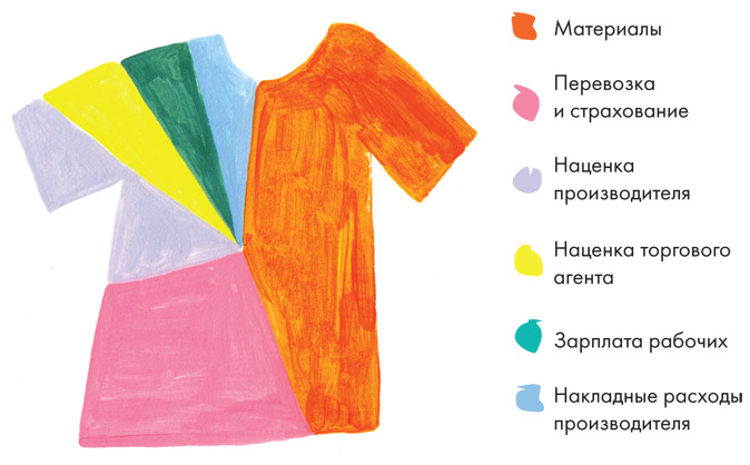 Футболка, которая продается по цене 14 долларов, обходится ритейлеру примерно в 5,67 доллара. Из этой суммы 3,69 доллара составляют расходы на материалы; 1,03 доллара – плата за перевозку и страхование; 0,65 доллара – наценка и накладные расходы производителя; 0,18 доллара идет торговому агенту, а жалкие 0,12 доллара получают за свой труд рабочие фабрик и мастерских[8]. Не мешает спросить себя: допустимо ли, чтобы одежда стоила так дешево?