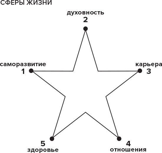 Нарисуйте на бумаге такую же звезду и каждую сферу своей жизни оцените по пятибалльной шкале. Чтобы сделать это, задаем несколько вопросов применительно к каждой сфере и оцениваем ответы в баллах.