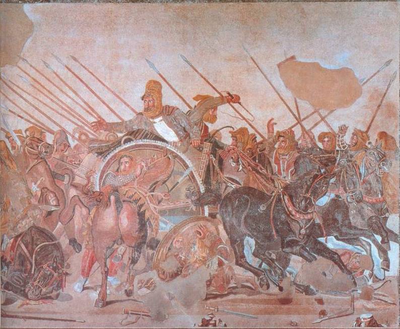 Когда-то очень давно легенды и мифы воспринимались человеком как что-то реальное, когда-то происходившее на земле. Поэтому мифологические сцены на старинных вазах и фресках считались изображением далекого прошлого. Лишь со временем историки Древней Греции, а затем и Древнего Рима начали осознавать прошлое как последовательность реальных событий, фактов. С этого времени художники, создавая свои произведения, от мифологических начали отделять подлинно исторические элементы. Так, в III веке до н. э. греческий живописец Филоксен выполнил картину «Битва Александра Македонского с Дарием». Эта композиция не дошла до наших дней, но представление о ней современные ценители искусства имеют по римской мозаичной копии, найденной в одном из домов в Помпеях, разрушенных во время извержения Везувия.