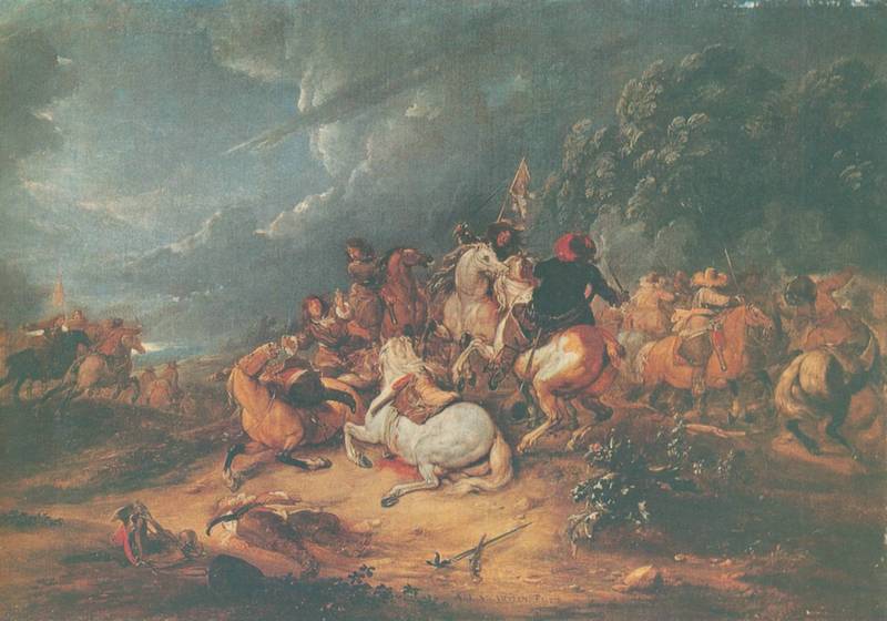 Сцены военных сражений писали такие французские мастера, как Жак Куртуа («Кавалерийская схватка»), Адам Франс ван дер Мейлен («Кавалерийская стычка»), Жан Батист Мартен («Осада Намюра»).