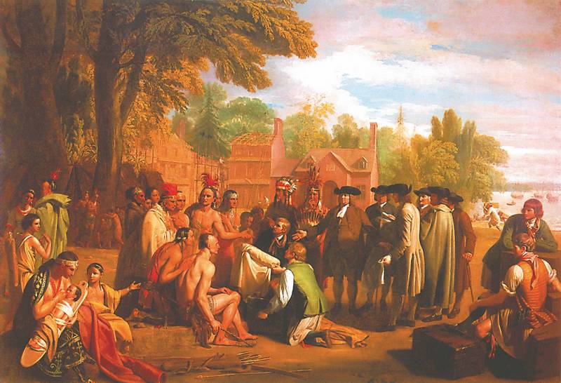 Исторический жанр был необыкновенно популярен в XVIII–XIX веках не только в Европе и в России, но и в Америке. Так, американский художник Бенджамин Уэст писал картины на исторические сюжеты («Леонидас II, король Спарты, отправляет в изгнание Клеомбротуса»). Уэст получил образование в Италии, с 1763 года работал в Лондоне, где стал одним из основателей, а затем президентом Королевской академии художеств. Кроме того, он был историческим живописцем английского короля Георга III. Уэста привлекала не только античность. Так, в 1771–1772 годах он создал полотно, в котором показал историческое событие, положившее начало созданию в Америке английской колонии Пенсильвании («Уильям Пенн подписывает договор с индейцами»).
