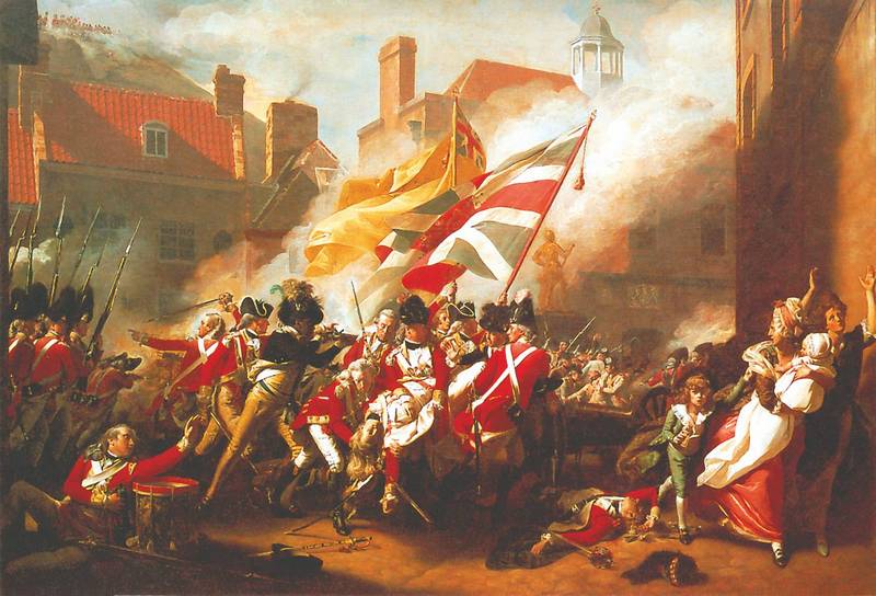 Живописец показал событие современной истории – восстание англичан, оказавших сопротивление французам, вторгшимся в 1781 году в американский город Джерси.