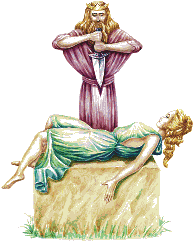 После того как Парис похитил Елену, жену Менелая, бывшие женихи этой красавицы объединились в войско и отправились в военный поход на Трою. Агамемнона как старшего брата обманутого мужа выбрали предводителем, но отрицательные качества его характера послужили причиной многих несчастий, случившихся не только с самим Агамемноном, но и с его войском. Например, однажды царь подстрелил на охоте лань и громко заявил, что его меткости должна завидовать сама богиня охоты Артемида. Услышав это, Артемида разозлилась и наслала на флот Агамемнона свирепый ветер. Кораблям так и не удалось выйти из Авлида. Пришлось Агамемнону усмирить свою гордыню и принести Артемиде в жертву свою дочь Ифигению.