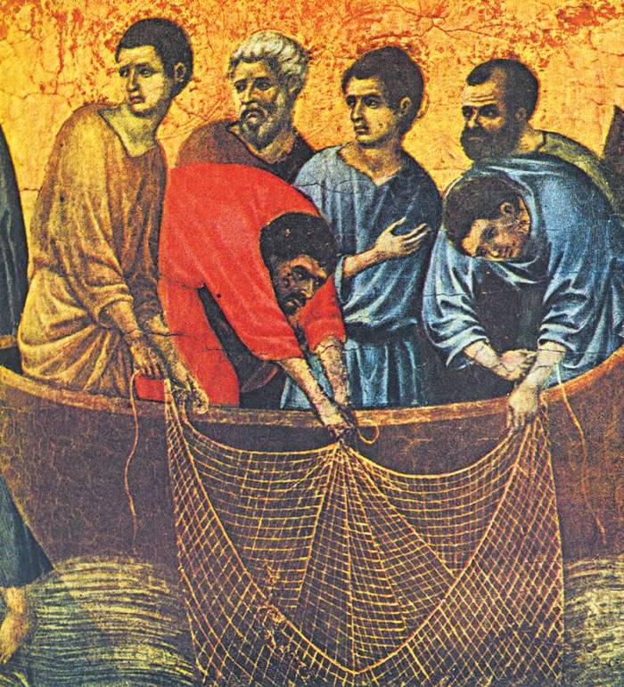 Дуччо. «Призвание апостолов Петра и Андрея». Фрагмент алтарного образа «Маэста»