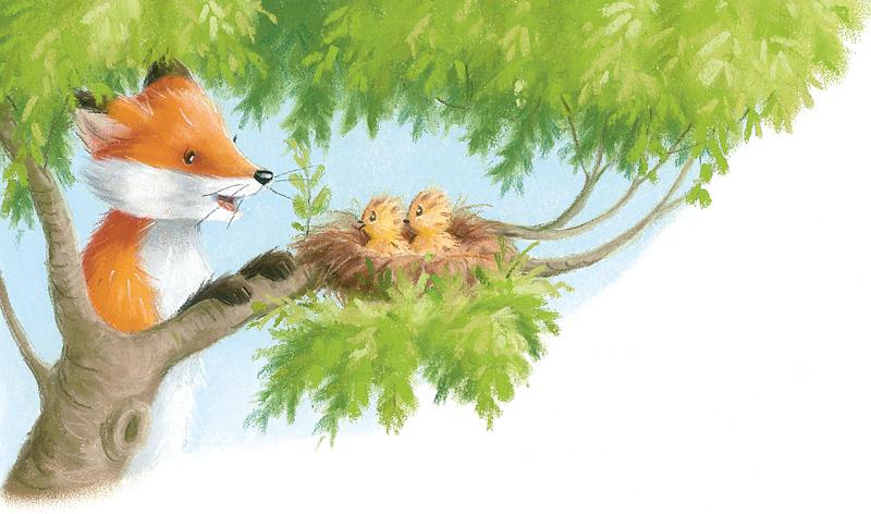 – Ой, смотрите! – воскликнула Лиса, забравшись на дерево. – ПТЕНЧИКИ УЖЕ ВЫЛУПИЛИСЬ!