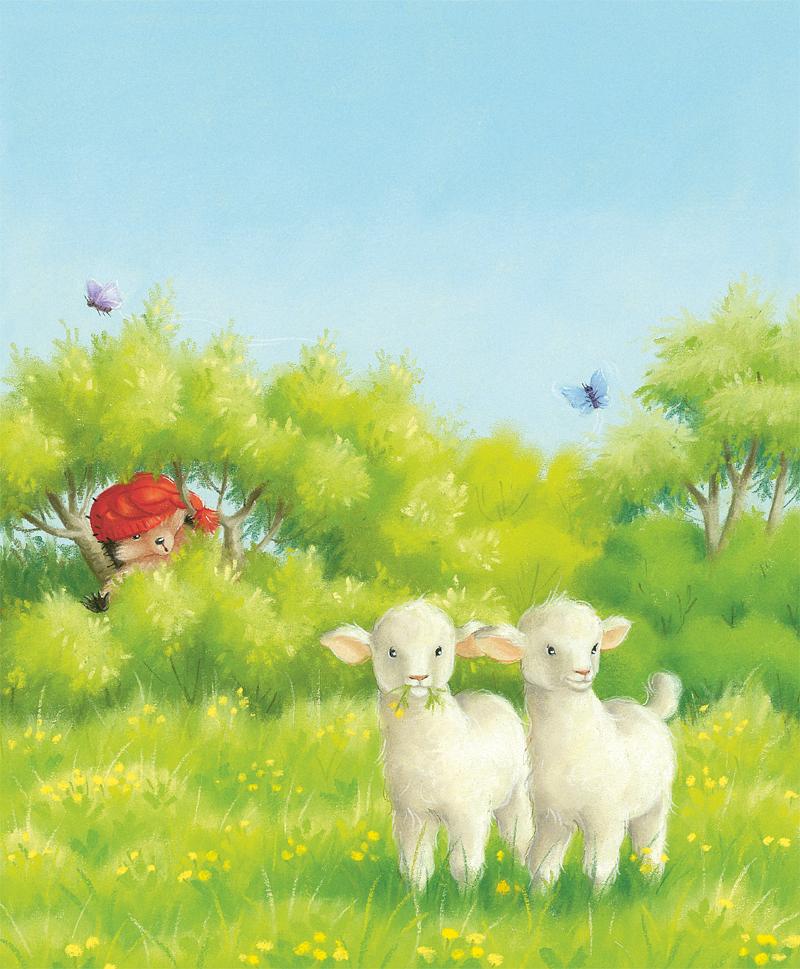 – ВИЖУ ПУШИСТЫХ ЯГНЯТ! – отчитался Ежулька и попытался протиснуться сквозь живую изгородь. – Ай-яй! Кажется, я застрял…