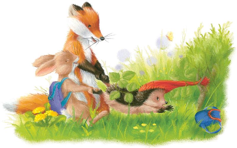 Лиса и Заяц поспешили ему на помощь. Раз, два, взяли! – и Ёжик пробкой выскочил из куста.