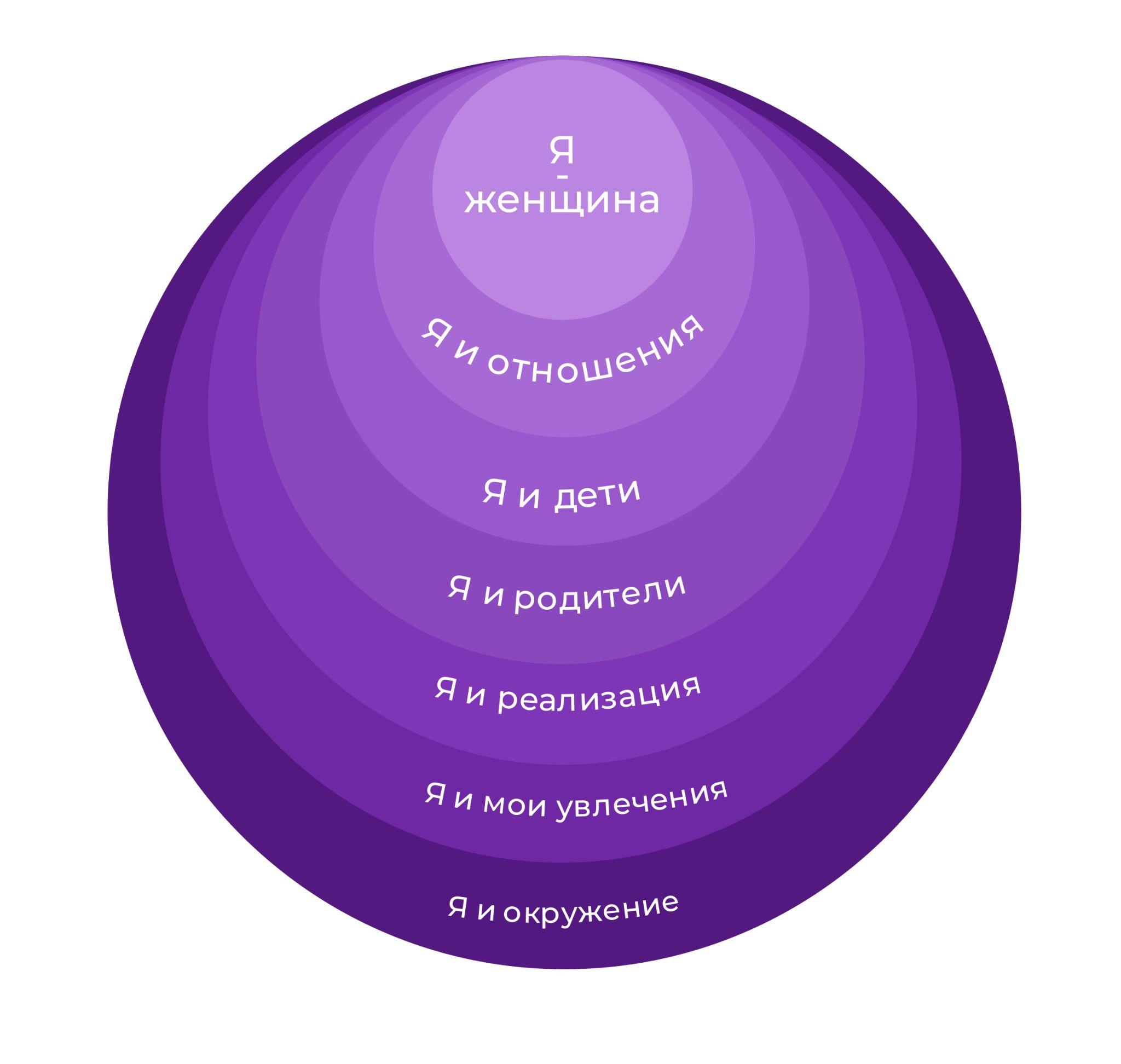 Эти семь основополагающих сфер помогают женщине быть в потоке, то есть, влиять на качество своей жизни.