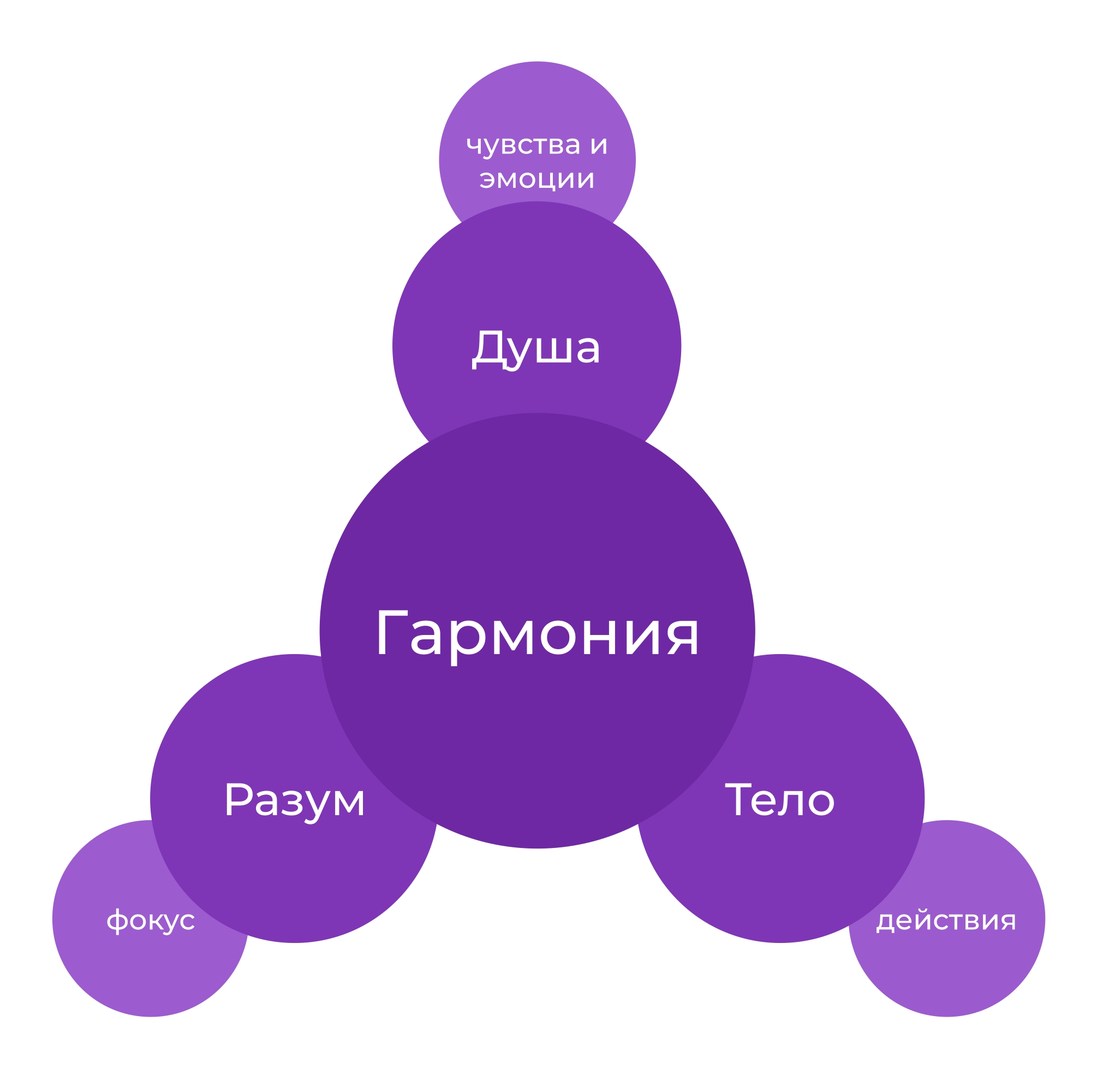 Работая в каждом из этих направлений, вы добьётесь качественного улучшения жизни. Поэтому, если мы говорим про «тело-душу-разум», то это всегда разговор про гармонию. Я убеждена, что каждый человек может жить в балансе. В конце концов, именно так задумано природой, точно так же, как смена ночи и дня, разделение на мужчин и женщин, инь и ян.