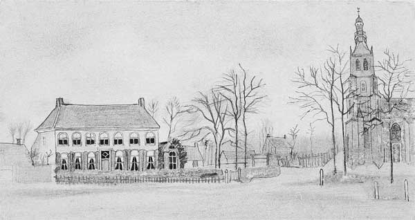 Винсент Ван Гог. Дом священника и церковь в Эттене. Перо, чернила, карандаш. 1876