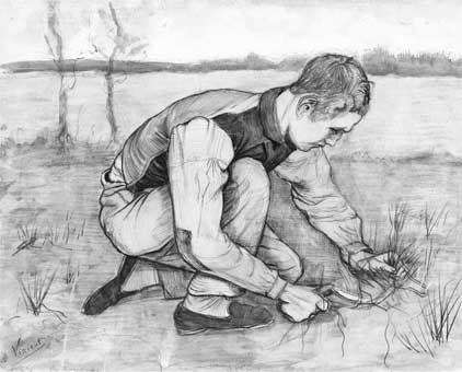 Винсент Ван Гог. Мальчик, режущий траву. Акварель, черный мел. Октябрь 1881. Музей Крёллер-Мюллера, Оттерло