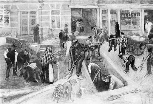Винсент Ван Гог. Улица с рабочими, копающими траншею. Карандаш, тушь. Апрель 1882