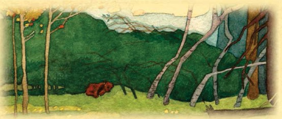 – А я вижу дерево, на нем сова спит… – отвечала Медвежонка.