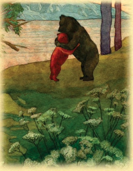 Медведица, увидев свою дочь, очень обрадовалась. Она подхватила Медвежонку большими лапами и, прижав к себе, сказала: