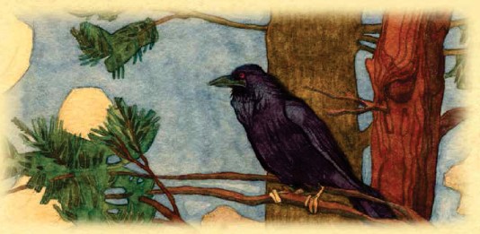 Медвежонка подняла голову и увидела на высокой сосне Ворону.