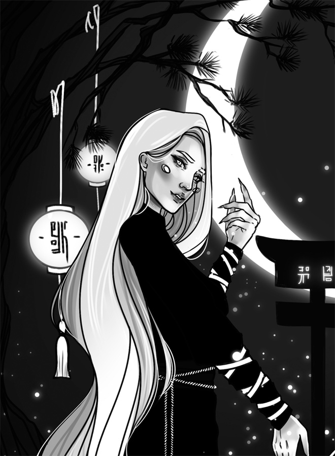 ШинРэйкен возглавляла нашу процессию. В темноте таинственного леса ее белые одежды и волосы зловеще освещали путь. Я шел за ней, шаг в шаг, и не мог побороть изумления, вызванного ее преображением: от старого сморщенного существа не осталось и следа. Священник говорил про тьму, в которой могла возродиться ее сила, но я и представить не мог, что демон, запертый в клетке на двадцать лет, мог так быстро оправиться.