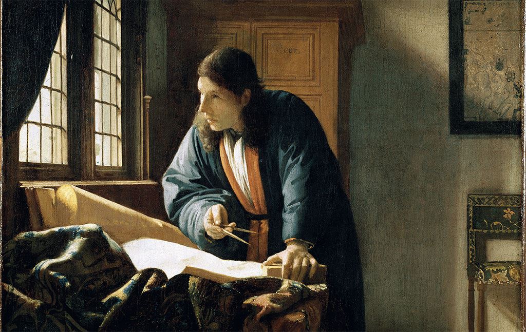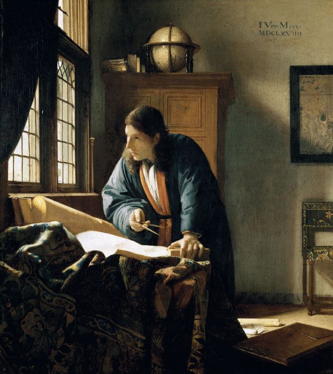Незадолго до того, как Вермеер начал писать эту картину, в истории науки произошли глубокие и драматические перемены. Прежде исследования природы звезд, Земли и жизни считались противоречащими божественному замыслу. Всего тридцатью годами раньше Галилей был осужден за сделанные им открытия и, стоя на коленях, отрекся от утверждения, что Земля вращается вокруг Солнца. Но в XVII столетии научное «curiositas» (любопытство, лат.) больше не страшилось запретов религиозных властей и немилости консервативных гуманистов.