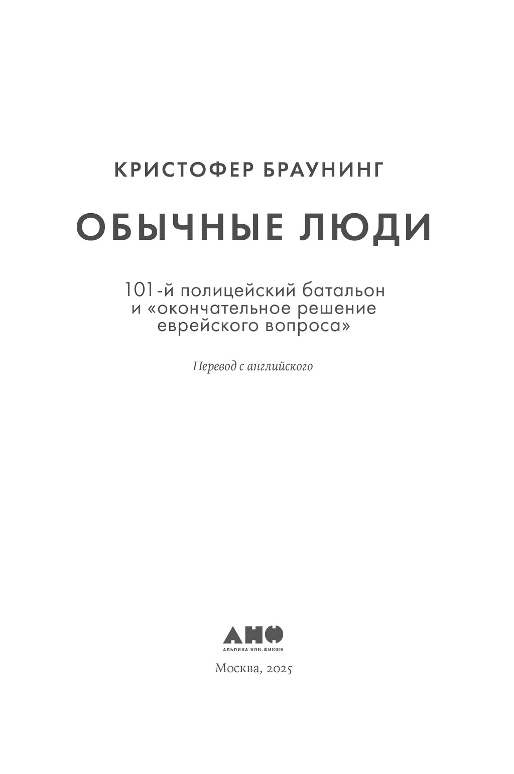 Обычные люди: 101-й полицейский батальон и «окончательное решение еврейского вопроса»